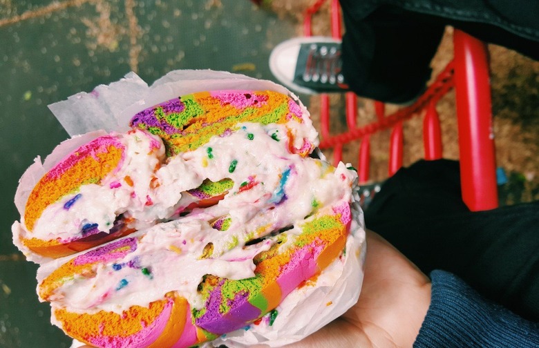 This is one of those trends that we'd be happy if it disappeared forever: rainbow everything. Bagels, burgers, cakes, sushi, grilled cheese, pizza... it seriously needs to stop.