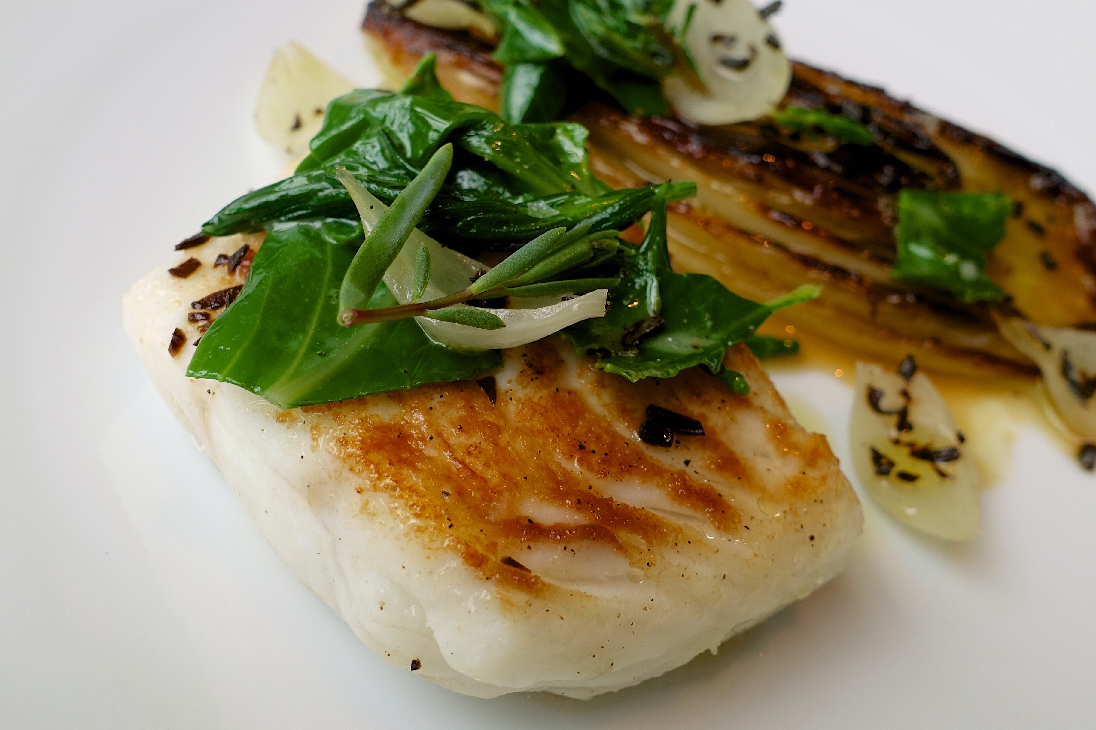 Chicken Cooked with Lettuces, circa 1670, is literally as it appears on the menu, and in all truth, is something that I wouldn't typically order at a restaurant with two Michelin stars. But for that reason, I decide to go against my best instincts, and wait to have my expectations of a meat and salad dish challenged. The dish itself is, on arrival, a surprisingly simple plate. An elegant roulade of pristine white chicken, encased by the most golden of crispy skin lies next to gently cooked lettuce, a burnt onion emulsion, and a spiced celeriac sauce. The chicken is tender and supple; its texture is utter perfection after being brined, then sous vide for an hour and half, before then being blanched. There's a hint of smokiness from the creamy milk-based spiced celeriac, and a saltiness from the crispy oyster leaf. It's a deceptively complex composition, with every single element superbly prepared, resulting in an affably warm and satisfying dish.