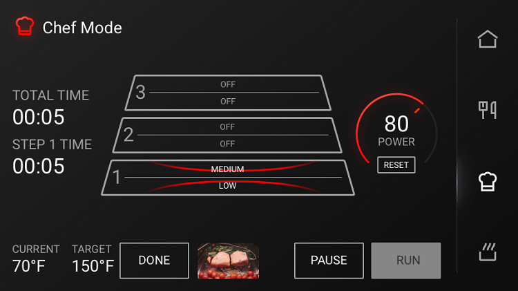 There is also a "Chef Mode," which allows consumers to control the power of each lamp at their own discretion. Each setting can be saved and shared with other users wishing to recreate the same recipe.
