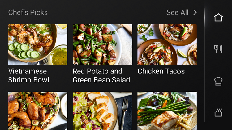 A smartphone app allows you to cast recipes to your smart oven from afar. So if you're at work and you select a meal, it will be waiting for you on your appliance when you get home. You can even prioritize certain selections so you don't have to look through pages of bookmarked recipes.
