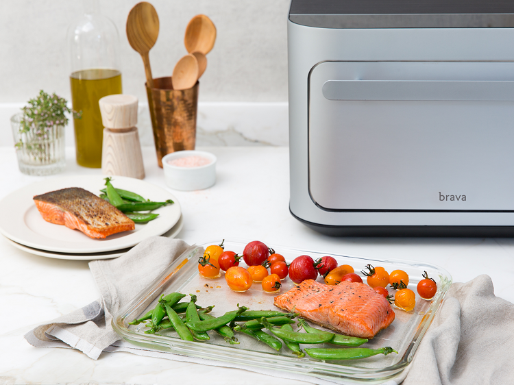 Introducing Brava, the smart oven that cooks twice as fast as a convection oven without compromising the taste you know and love. There's no preheating required, and multiple different foods can cook at different temperatures on the same tray at the same time using little energy. What is this sorcery?
