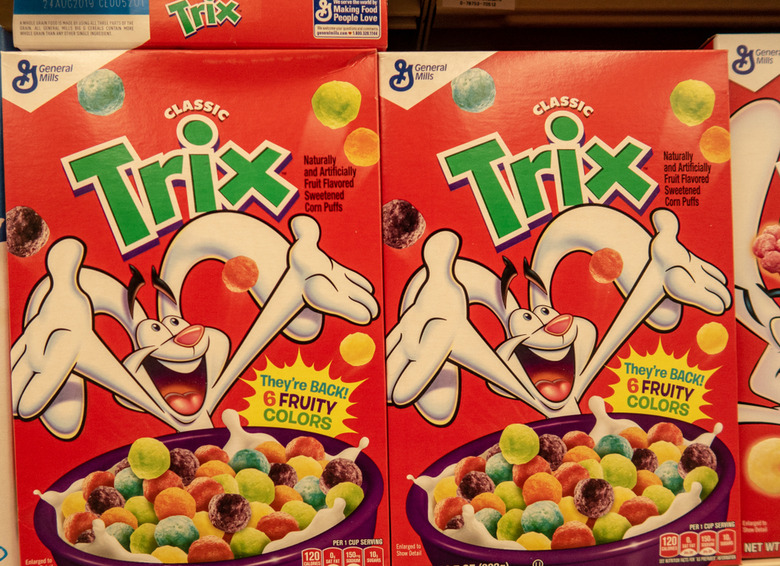 Silly rabbit, Trix are for kids. The colorful Trix cereal was introduced in 1954 by General Mills and was the first fruit-flavored cereal on the market, continuing the trend of sugary cereals on American breakfast tables. Carnation also released nonfat dry milk. Pillsbury rolled out its now-iconic cinnamon roll in a can.