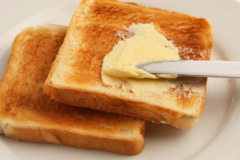 Margarine was a popular spread in the 1950s, in part a holdover due to the rationing of butter during WWII. In 1956, margarine sales were on the verge of surpassing those of butter. So it wasn't uncommon to find a slice of toast slathered with margarine with a side of bacon and eggs.
