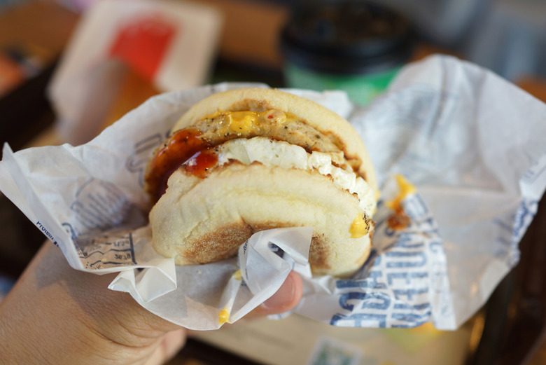 While Dunkin' Donuts began making bagels in 1996, Burger King was gaining on McDonald's Egg McMuffin by offering the Croissan'wich. It featured egg, cheese and sausage on a flaky croissant.
