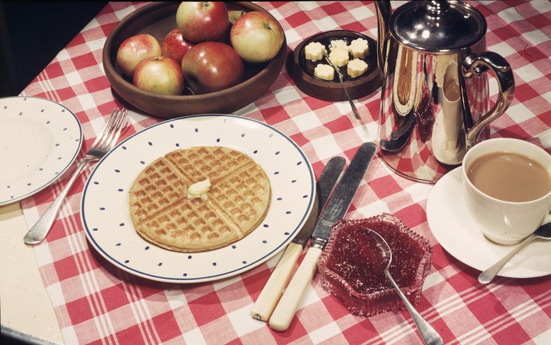 Bisquick was invented in the 1930s as a shortcut to homemade biscuit recipes. Although biscuits weren't a new breakfast item, they made a resurgence after General Mills made a marketing push for the innovative mix. An advertisement from 1937 shows the biscuits being served with jam, two items you'll find on lots of Southern breakfast tables. And for an extra special treat, the first Krispy Kreme doughnut store opened in North Carolina in 1937.