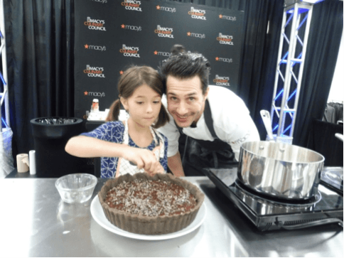Heeeere's Johnny! As Chef Iuzzini walked on stage and prepared last minute items before lights, camera, action, it was fun to watch him whisk a chocolate bowl to the rhythm of the beat. As soon as the song "Pour Some Sugar on Me" by Def Leppard was over, the tone of his voice lit up the room. It was a full house, yet a very personal and interactive session. The dessert theme was sweet meets salty. He invited a little girl named Lucia on to the stage as his Sous Chef. She was endearing, had culinary experience baking with her mom, and was never shy to speak her mind to the chef.