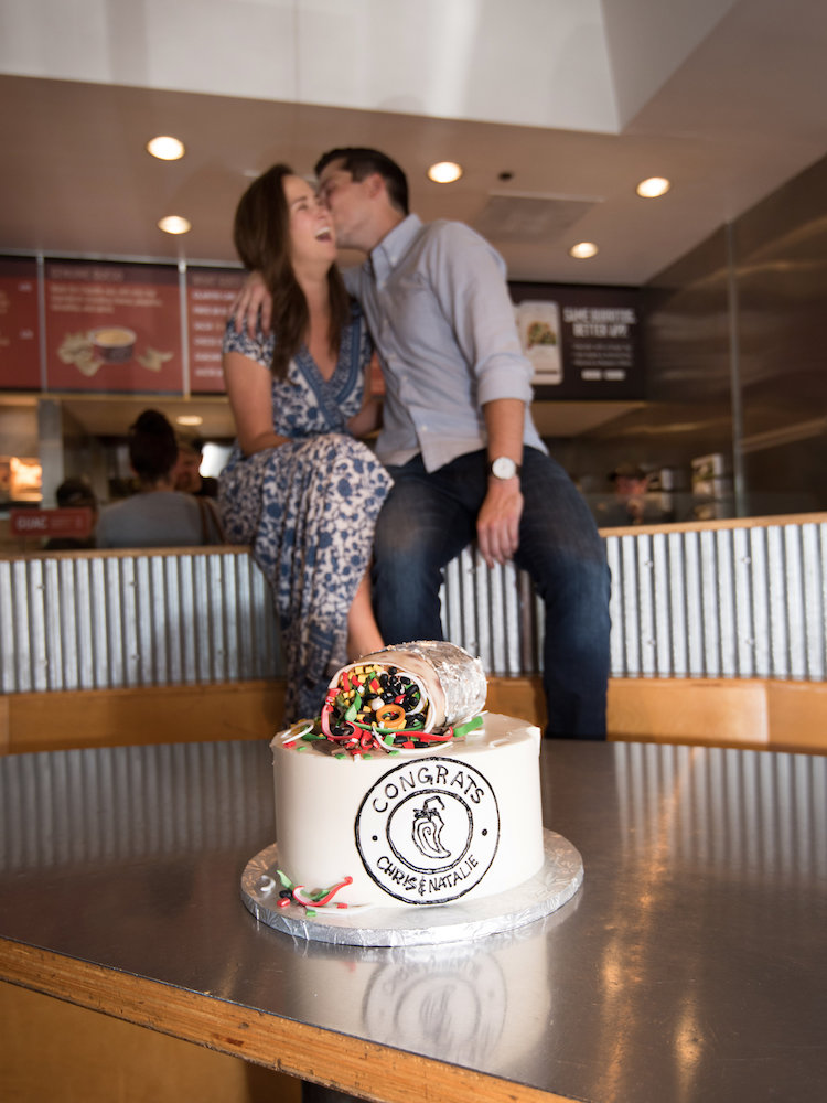 When Chris Piwinski was getting ready to pop the question to his high school sweetheart, Natalie Neach, he thought about the last 12 years of their lives. What place saw them through routine lunches and dinners? Where did they go for various relationship milestones? Through every school dance, breakup, and make-up, only one place was there: the Chipotle in Elk Grove, California. Thus, the Sacramento-area native thought it was just the perfect spot to propose.