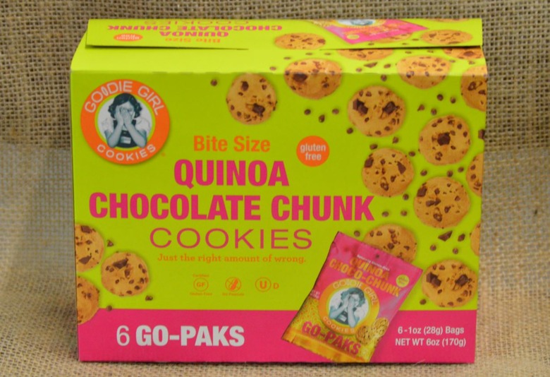 Goodie Girl cookies are gluten free and made with quinoa, rice, corn starch and tapioca. They were very small and hard as a rock with a button-like shape, and many tasters were put off by their dry texture. Several tasters noticed the addition of cinnamon, but it didn't do much to salvage this underwhelming cookie.