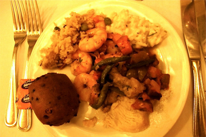 Enter Samana restaurant at Club Med in Punta Cana, Dominican Republic. After doing a lap before committing to food options, I scooped some risotto for a taste, then portioned out yummy grilled shrimp with rice, fresh vegetables, grilled chicken, and their signature dark chocolate bread (yes, it's just as delicious as it looks).