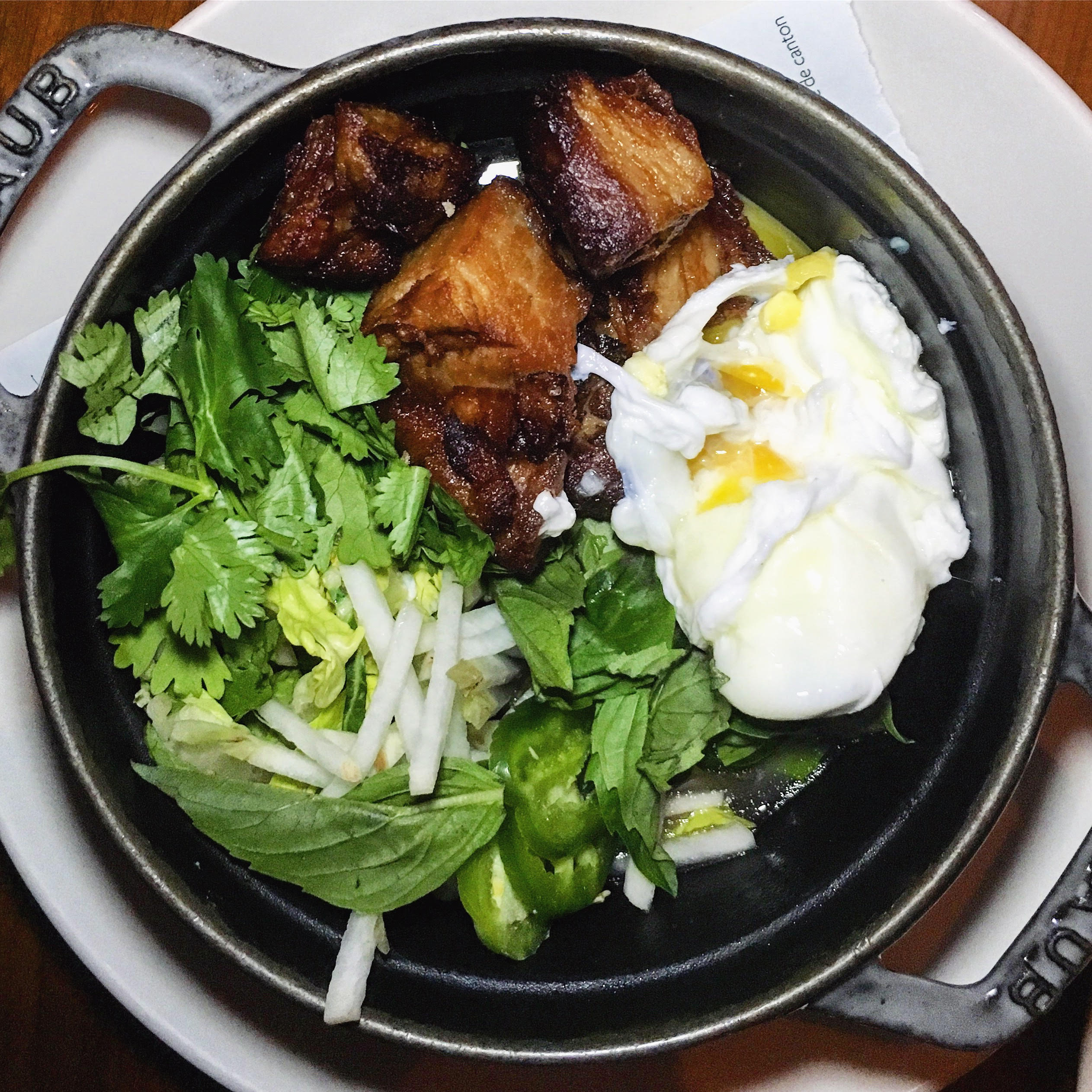 End with the Blue Crab, which comes in a cast-iron bowl with crispy pork belly and a poached egg that, when blended together in the anise broth, is creamy perfection with a little jalapeño kick to the bite. The savory, tender pork belly melts in your mouth, its richness enhanced by the egg. This hearty, filling dish is ideal for a chilly evening.