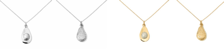 Do you know anyone who's obsessed with avocados? Andrew Zimmern's Delicacies Jewelry — the same company that has allowed you to look chic while wearing a gold pineapple necklace — is finally coming out with avocado-inspired necklaces and pendants. The avocado necklace — which comes in gold or silver — is crafted with a diamond pit in the middle, so you can feel extra fancy while celebrating the ingredient that has made brunch great again. The 14 karat gold pendant will cost you $1,100, while the sterling silver version is just $60. Other ingredients featured on Delicacies Jewelry's website include precious metal renderings of basil, garlic, corn, artichoke, and an egg.