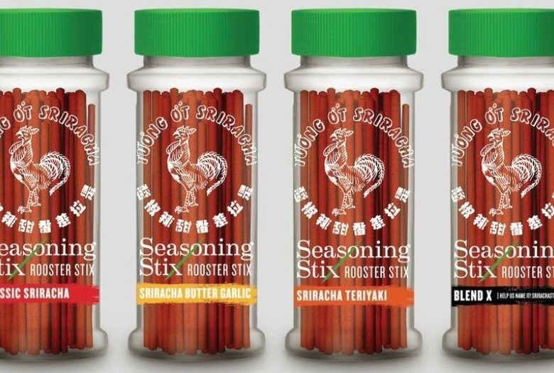 Sriracha flavoring is everywhere from vodka to McDonald's burgers, but now the Thai-style hot sauce is available in a new form. Southern California-based Huy Fong Foods, whose version of the sauce ignited the sriracha craze, has released a line of sriracha seasoning sticks, designed to add heat to your meat dishes. The new product, marketed as Sriracha Seasoning Stix, comes in solid form, but transforms into a powder that can be used as a dry rub or to form a crust on meat. The Stix come in a tube and resemble red Pocky sticks, and are available in regular, butter garlic, and teriyaki flavors, as well as a mysterious flavor called "Blend X." The Stix will be available online only starting at the end of February.