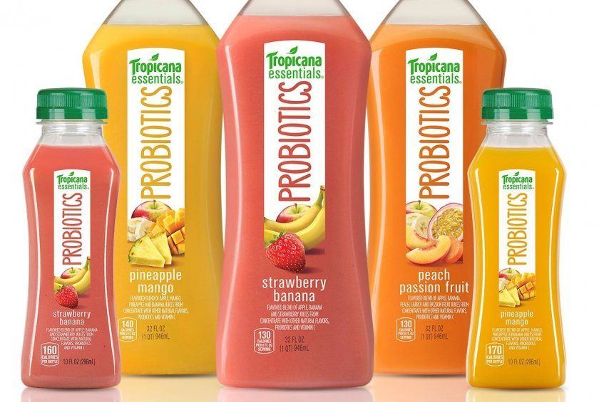 Tropicana is launching a probiotic juice line, which will be coming to select retailers in October and launch nationally in early 2017. Tropicana Essentials Probiotics is a 100-percent juice with 1 billion live and active cultures per serving. It comes in three flavors: strawberry banana, pineapple mango, and peach passion fruit, according to a release. There are no added sugars, preservatives, or artificial flavors in the product. "We are thrilled to be the first to bring probiotics more commonly seen in yogurts, supplements and kombuchas to the mainstream juice aisle," said Björn Bernemann, vice president and general manager for Tropicana North America. The probiotic juices will be available in multi- and single-serving sizes, and can be found in the refrigerated juice aisle.