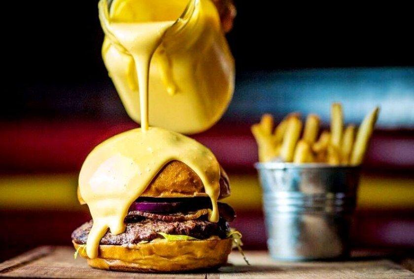 Outrageous cheeseburgers seem to be all the rage nowadays. But one restaurant in London seems to have taken the concept of a cheeseburger and thrown all common sense out the window. The Burger Cheesebomb at Maxwell's in London is topped with six ounces of beef, bacon, lettuce, and tomato, and smothered in a fondue pot-full of melted cheese. Pouring melted cheese on top of a burger bun does look amazing on video, so we're assuming most of the hubbub comes from people who can't wait to capture the liquid golden gloriousness cascade onto their social media feeds with a mouthwatering Boomerang video.