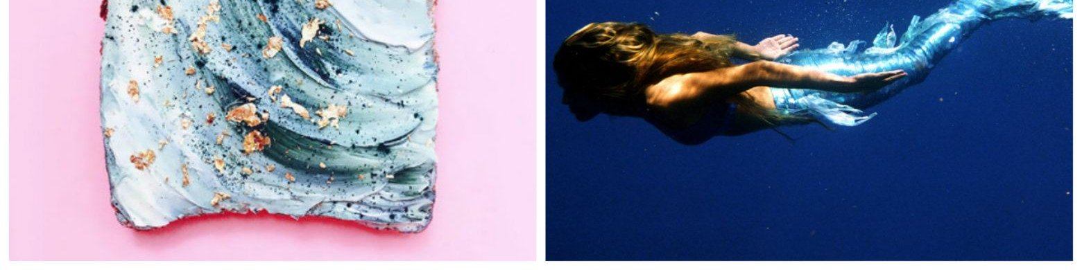The latest colorful food creation that's taking the Instagram world by storm is mermaid toast, which looks like toast smeared with ocean waves. Mermaid toast was invented by Adeline Waugh, a food stylist and Instagram personality (@vinbrantandpure). It's made with homemade almond milk cream cheese that's mixed with blue-green algae powders and liquids — to give it that "fresh from the ocean" look — and sprinkled with gold leaf. "I am a food stylist and I like to create beautiful things using food — I've never claimed to be starting a trend or putting out a new recipe that is super practical," Waugh explained in a social media post. Waugh has also created rainbow unicorn toast, and we all know how popular unicorn-themed food is lately.