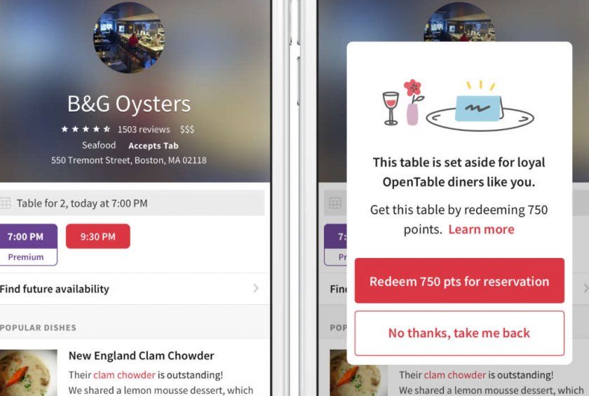 OpenTable has created a new VIP Premium Access feature that is being tested out in Boston. The "pay-for-play" system lets you trade in your OpenTable points (received when checking into a restaurant) for access to popular tables at high-end restaurants that usually sell out in advance. You can still exchange your points for gift cards as under the old system, but this allows diners the option to use their "dining status" to get into Michelin-starred restaurants instead, without the frustration of a six-month waiting period or lottery system. "We always heard at cocktail parties: 'Hey you work at Open Table, we'd love if you could get us in to this restaurant.' Now there's a way to do that," Scott Jampol, senior vice president of marketing for OpenTable, told Eater. Currently, 13 Boston restaurants are participating in the Premium Access test run.
