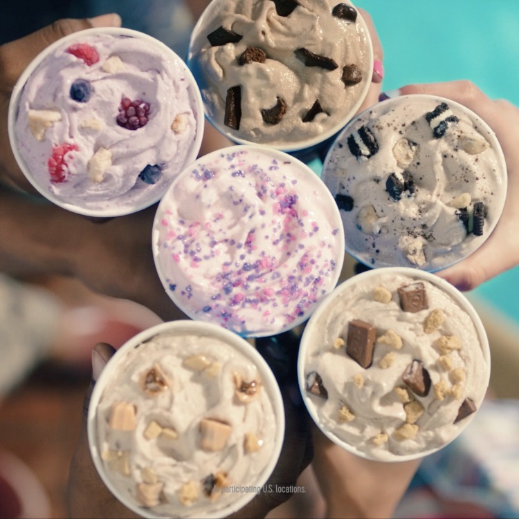 And two new Cupfections are sundaes taken to the limit, layered with baked goods and toppings. (No one was trying to eat healthy this summer, right?) The Brownie and Oreo Cupfection features an entire triple-chocolate brownie, Oreo pieces, chocolate sauce and marshmallow topping on a cup of soft serve. And the Summer Berry Cake Cupfection layers the soft serve with vanilla cake, three kinds of berries, choco chunks and whipped topping.