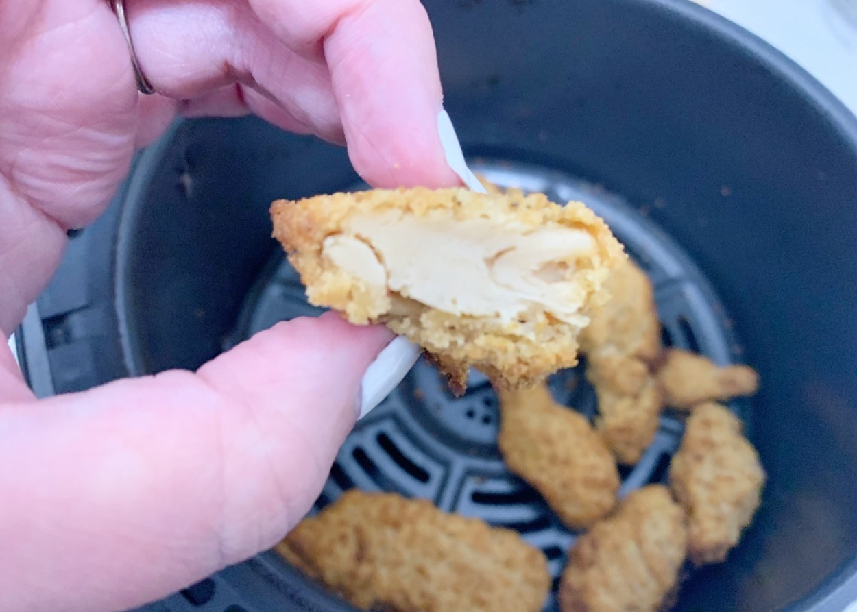 I followed my air fryer's instructions for frozen chicken tenders, which was the closest thing to the Daring package. I cooked the entire bag at 390F for 12 minutes, and the end result was exactly what I expected: hot and a little crisp. Another minute or three wouldn't have hurt these, especially if you like your tendies extra crunchy.