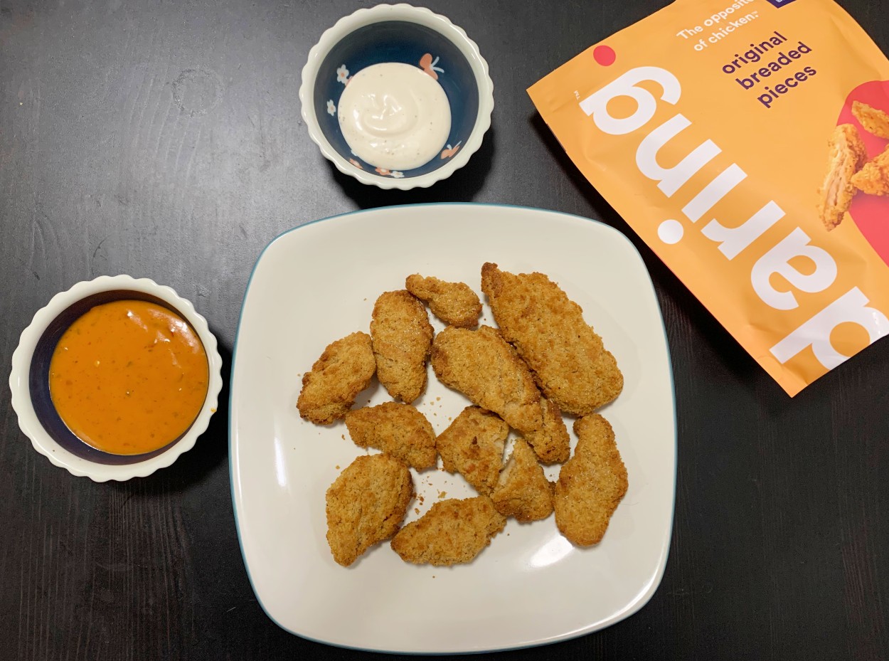 Like Impossible Burgers, Just Egg and other plant-based animal product swaps, Daring Foods is a bit on the pricey side. On their website, a four-pack of Original, Cajun or Lemon & Herb Pieces will run you $29.99, resulting in a final price of $7.50 per eight-ounce pack. The Original Breaded Pieces are $29.99 for three, which breaks down to $10 a pack. This is much more expensive than eight ounces of chicken, which is a budgetary concern.