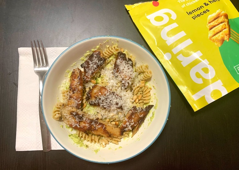 After I took the Daring pieces out of the pan, it was time for a taste test. It did taste like chicken in that it primarily reflected its seasonings. The lemon and herb taste was present but not overpowering, though I wouldn't be mad if the lemon flavor was amped up even more — but I'm a total lemon head.
