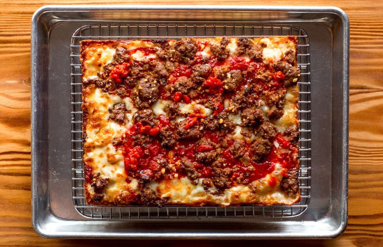 The Chazy-Boom-Wow from Emmy Squared: Detroit-inspired square pizza topped with meatballs