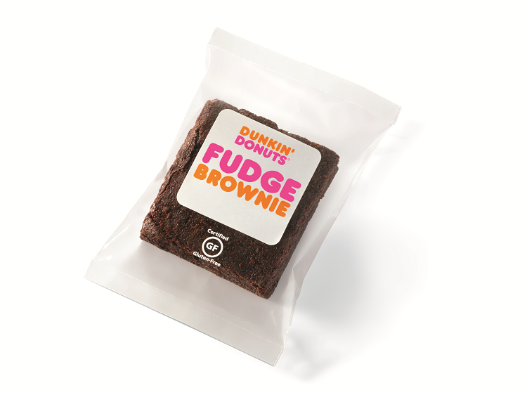 The Fudge Brownie is described as "an indulgent and chocolaty gluten-free fudge brownie," that arrives in plastic-wrap. This marks Dunkin' Donuts' first-ever nationwide gluten-free bakery item.