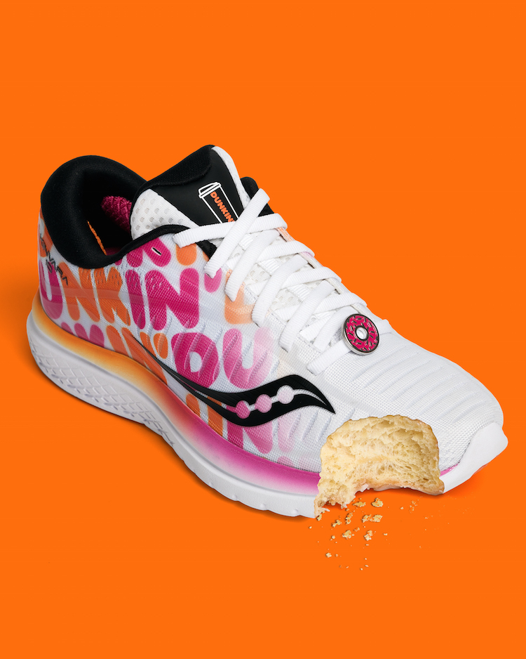 You're likely familiar with the tagline "America Runs on Dunkin'" — and for the first time last year, people could literally run on Dunkin' with limited-edition footwear made in partnership with another Boston-based brand, Saucony. This year's sneaker was inspired by the historic 26.2-mile Boston Marathon. It's called the Saucony X Dunkin' Kinvara 10, a colorful take on Saucony's award-winning Kinarva 10 model.