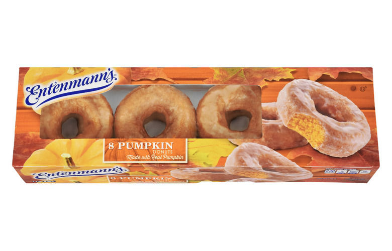 Everyone's favorite store-bought doughnut brand, Entenmann's, has released its pumpkin flavor again. Both Dunkin's and Tim Horton's Pumpkin Spice Donut is in stores now, as is Krispy Kreme's Pumpkin Spice Cake doughnut.