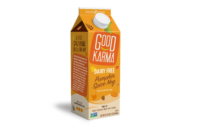 Hood usually makes a pumpkin spice eggnog, though we aren't sure if it's returning just yet. Good Karma Foods is offering a plant-based pumpkin spice "nog" made with flax milk available at Sprouts, King Soopers, Lucky's Market, Natural Grocers and more. Daily Meal staffers tested it and it's very good.