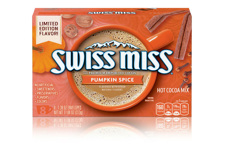 Curl up by the fire with a toasty mug of pumpkin spice hot cocoa from Swiss Miss, and add marshmallows if you're feeling fancy.