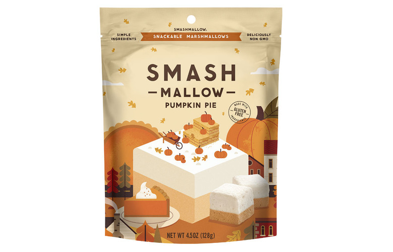 Jet-Puffed makes pumpkin spice marshmallows for s'mores or eating straight out of the bag. Also, Smashmallow (sold at Target only) and Dandies make premium snackable marshmallows made of all-natural ingredients.