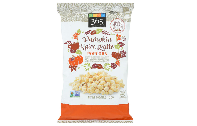 Archer Farms and Whole Foods's 365 Everyday Value brand both offer pumpkin spice popcorn — the perfect finger food for a spooky movie night. Aldi even sells a bag that's pumpkin spice and caramel.