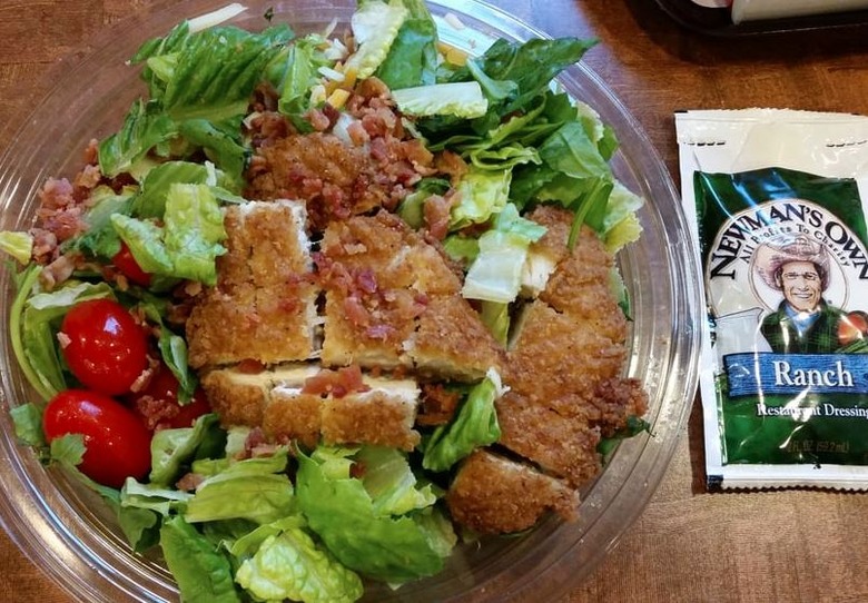 Planning on "just having a salad"? Some salads are definitely unhealthier than others; especially the ones that contain full-fat dressing, cheese, and/or fried chicken. While salads contain more vegetables than burgers, you'd be surprised by how high in calories and fat some of them are.