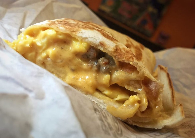 What sounds more appealing to you: "Bacon, eggs, and cheese in a tortilla," or "flavorful bacon, a double portion of fluffy scrambled eggs and lots of warm, melted cheddar cheese, all wrapped up in a warm flour tortilla"? We bet it's the latter, and fast food restaurants (and regular restaurants) know it too. That copy was taken from a Mother Jones article exploring the linguistic magic of Taco Bell's breakfast menu; by appending meaningless adjectives like "flavorful," "tasty," and "delicious" to their menu items they build expectations in their customers' minds that make them more likely to order them. And there's plenty of wordplay going on, too; notice how fast food chicken is no longer "fried," now it's "crispy" or "homestyle"?