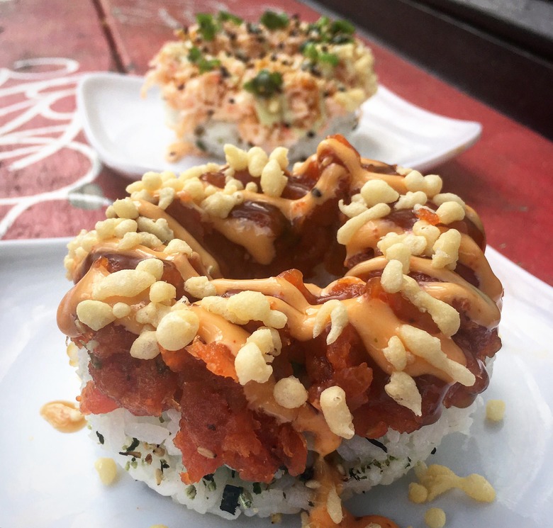 This gem is nestled inside of We Suki Suki in the main stretch of East Atlanta Village. Though poke bowls from Poke Burri are sensational in their own right, this booth has a variety of sushi burritos and, most importantly, sushi doughnuts (the newest national food trend). The sushi doughnut is essentially exactly like its name — sushi in the shape of a donut. And it is extremely fun to eat either with chopsticks or your fingers. I ordered both the spicy tuna and the crab sushi donuts as well as the spicy tuna nachos, all of which were fresh and drizzled with a savory sauce.