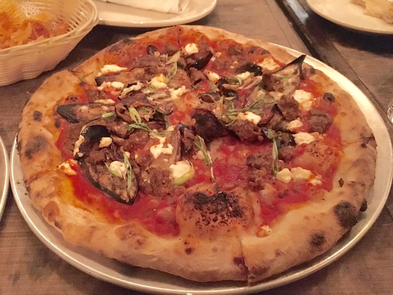 Signature cocktails include the Fresh Cut (cucumber, epazote, rum, chartreuse), Sleep No More (mescal, berry shrub, ginger beer), Something Wicked (tequila, pineapple, piri piri, tamarind agave), and A Rose By Any Other Name (tea, rye whiskey, lemon). Appetizers include a generous crudité bowl, a charcuterie board, mini lobster rolls, roasted carrot salad, lamb and ricotta meatballs, fried crab-stuffed squash blossoms, and fried oysters. And the pizzas are available in six varieties: margherita, pepperoni, Tunisian (merguez sausage, eggplant, scallion, feta), mushroom (with sage, baby kale, garlic, Cheddar curds, and taleggio), zucchini (with squash blossoms, cherry tomato, ricotta, and basil), and cauliflower (with za'atar, tahini, chile flakes, lemon, and parsley). The pizzas are expertly prepared, and there's not a clunker in the bunch.
