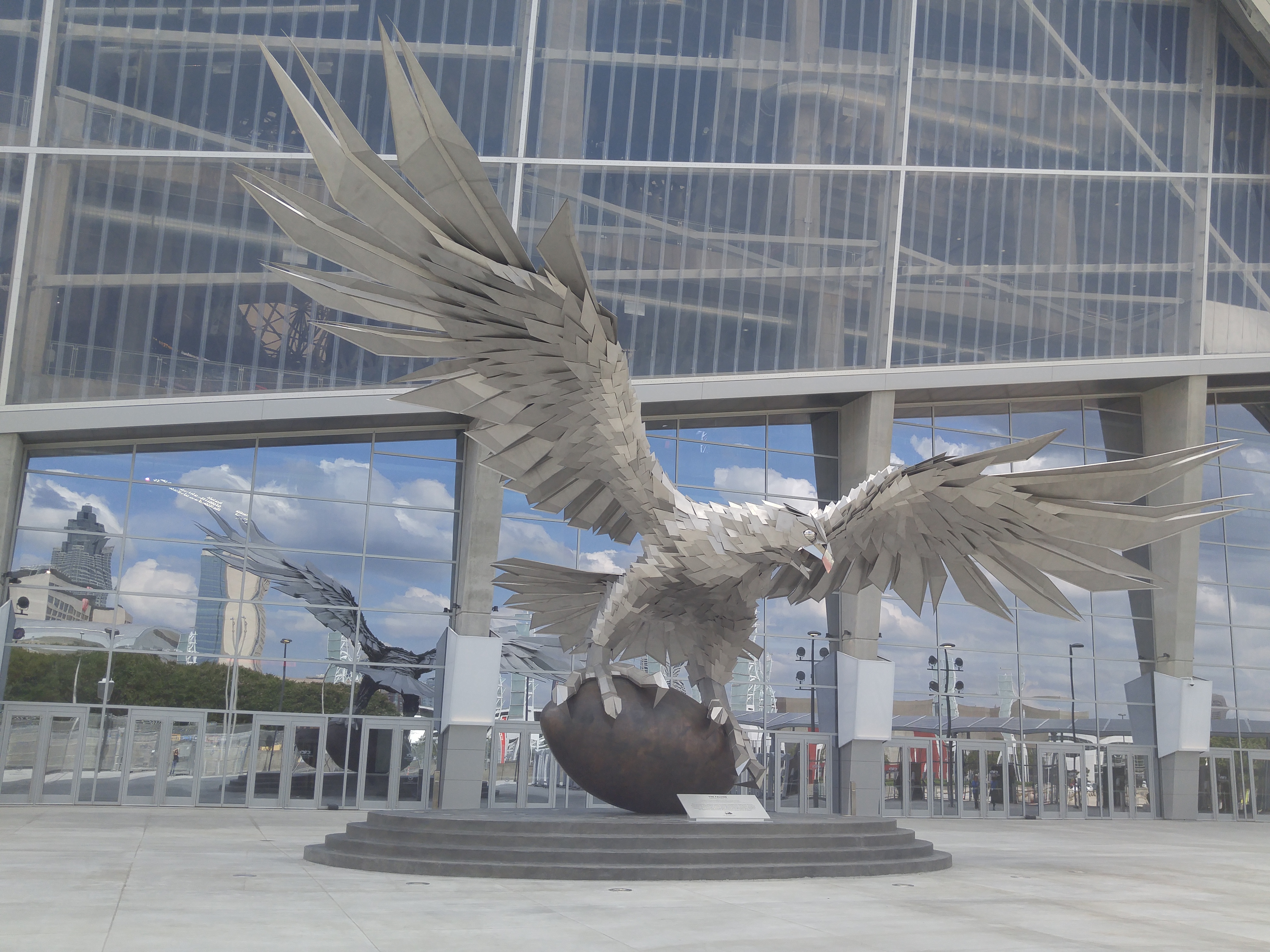 With the world's largest video board and bird sculpture (obviously a falcon), creative use of art and design including the one of a kind retractable roof modeled after the Roman Pantheon, plus affordable food and drink, the new Mercedes-Benz Stadium has many "firsts" and optimistically will be the first of many.