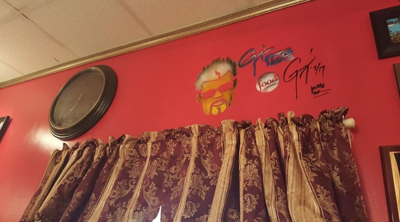 It appears he's kept his word, leaving his picture, signature and a "Guy ate here" message emblazoned on the walls of several local restaurants. Whether they'll be featured on the show has not been confirmed.