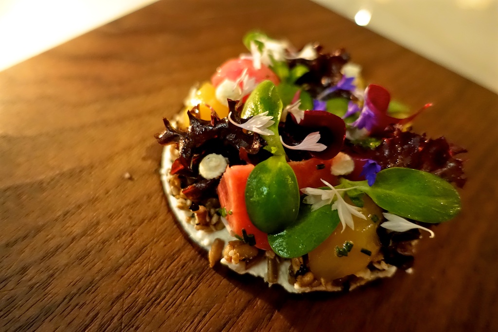 Walking into the restaurant, it is quite definitely the sexy backroom of the hotel. Flirtatiously outfitted with silver trimmings, dimly lit, surrounded by abstract paintings and a rectangular chandelier, the restaurant's stylish physical appearance is a sassy juxtaposition of class and sass. It's impressively refined without the suffering restraints all too commonly seen with fine dining. And it's this theme that's carried through the dining experience – an experience of beautifully crafted, spectacularly presented, highest quality food, laid out with warm sincerity.
