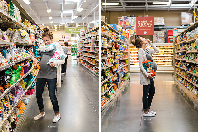 One Texas mom's maternity photos have gone viral because of how dang relatable they are. Instead of posing in a field of flowers or draped in a gown, Amy Scott of Montgomery, Texas, posed for her maternity photos inside of a local H-E-B grocery store with all the tasty snacks.