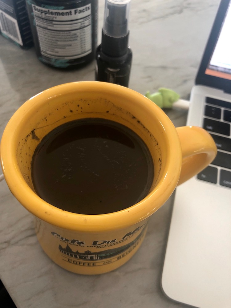 I knew what color the tonic was going to be. After all, the night before I had smeared it all over my face. However, after adding a teaspoon of the face mask to a mug of hot water and enhancing it "with your choice of nut milk" as directed (I used oat milk) it was kind of a sickly swamp water color.
