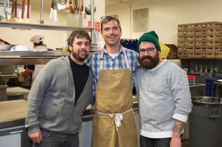 Chef Hugh Acheson (center) with Chefs Jon Shook and Vinny Dotolo.