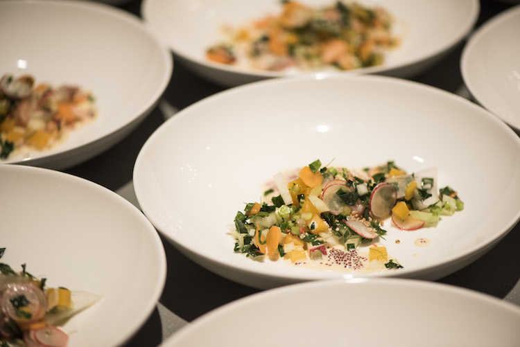 The night began with a tasty selection of reception hors d'oeuvres by local chefs David Barzelay of Lazy Bear, Val Cantu of Californios, Mourad Lahlou of Mourad, Melissa Perello of Octavia, Evan Rich of Rich Table, and host chef Oscar Gonzalez of the Fairmont San Francisco. Dishes like Cantu's much sought-after lobster tacos and Gonzalez's spring lamb birria with hominy, chicatanas, and salsa roja reflected the rich bevy of Mexican-inspired food culture in the Bay Area and the high caliber of chefs in San Francisco that can execute these dishes perfectly.