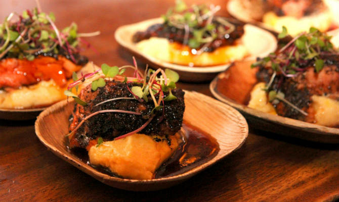Taste America Miami, held at the Forge in Miami Beach, began with a walk-around tasting reception featuring several acclaimed Miami chefs, including Timon Balloo (SUAGRCANE raw bar grill); Cindy Hutson (Ortanique on the Mile); Brad Kilgore (Alter); Giorgio Rapicavoli (Glass & Vine, opening fall 2015); and Cesar Zapata (Phuc Yea). Dishes reflected Miami's creative and multi-ethnic culinary scene, like Balloo's braised oxtail and pickled onions on arepas and Zapata's Vietnamese—inspired lettuce bundles with pork larb, crispy garlic and shallots, puffed rice, Thai chilies, and nuoc cham.