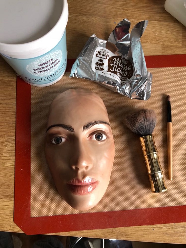 The life-size cake was built with 85 boxes of Rice Krispies cereal, over 30,000 mini-marshmallows, 33 pounds of fondant, and 13 pounds of chocolate. Every component — including a 3-D-printed face and faux-leather Balenciaga "bants" (pants with built-in boots) — is edible and handcrafted by Wingham herself.