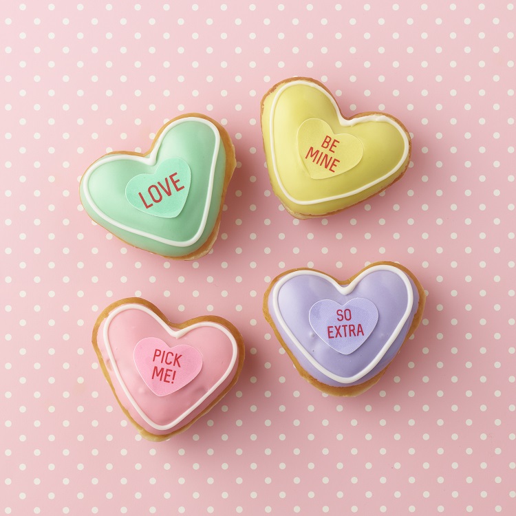From January 30 through February 14, Krispy Kreme is offering filled "Conversation Doughnuts" topped with edible phrases including "DM ME," "ALL THE FEELS," "SO EXTRA," "PICK ME!" and "BE MINE." Single people and couples alike can cop them in four different flavors: Cake Batter, Strawberries and Kreme, Raspberry and Chocolate.