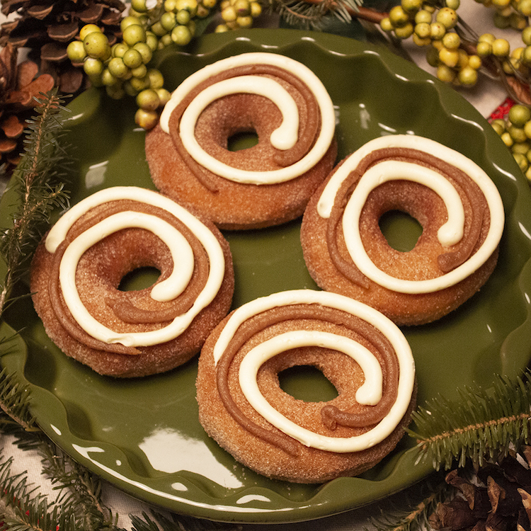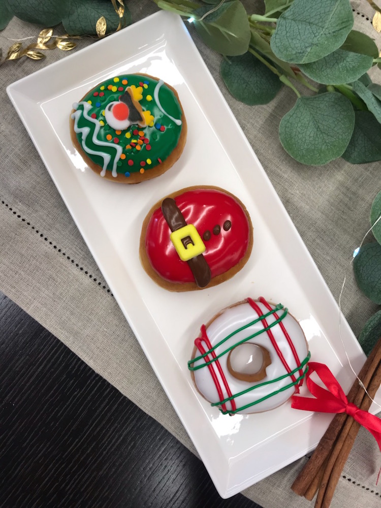 The Holiday Plaid doughnut was made to mimic the plaid flannels that keep you warm and toasty throughout the winter. It's iced with vanilla frosting and criss-crossed with green and red icing.