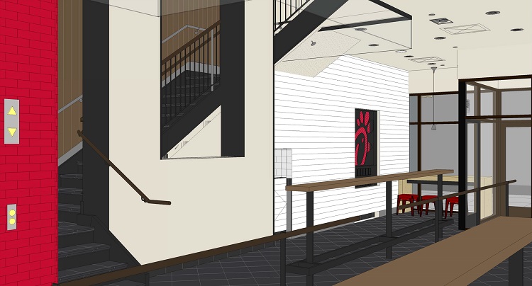 The new FiDi restaurant will be located at 144 Fulton Street, and is planned to be nearly twice the size of any existing Chick-fil-A — although, at only 15 feet wide, it will be the chain's most narrow location. Ceiling-to-floor windows will be installed on each of five levels that include two floors for kitchen space and three levels to seat 140 guests.