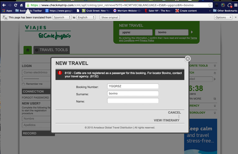 Indeed. I could have told you that before I even left New York City at the invitation of Spain ICEX Export and Investments. Why? Because my last name is Bovino ("bovine" in both Spanish and Italian) and before I even was able to get on the plane, Iberia's online site notified me that "Cattle are not registered as a passenger for this booking." I've been told things about my surname over the years (including from a Sicilian that it sounds like a Mafia name), but at no point did I ever think that the technology that allows most people to secure seats would hold the literal meaning of my last name against me. So no, no disappointment.