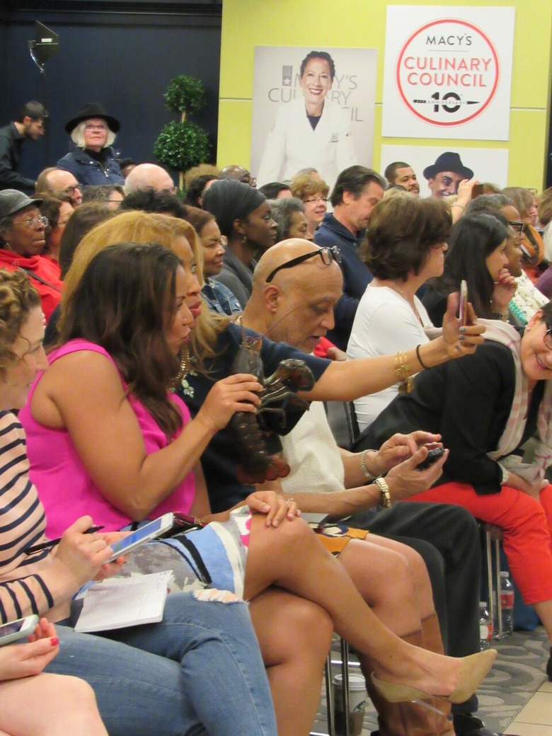 Chef Samuelsson took a moment to grab a bite of his own while the audience enjoyed their sampling.